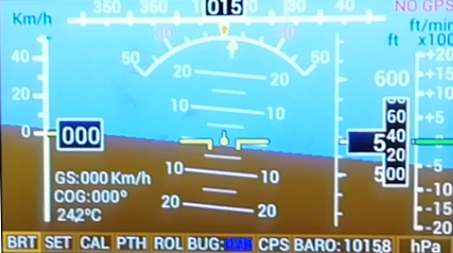 NOTA: La photo de ce Mini EFIS 4.3″ ne correspond pas a celui dont je parle car après des modifications importantes le menu CAL et CPS n’existent plus, sinon le reste est bon.